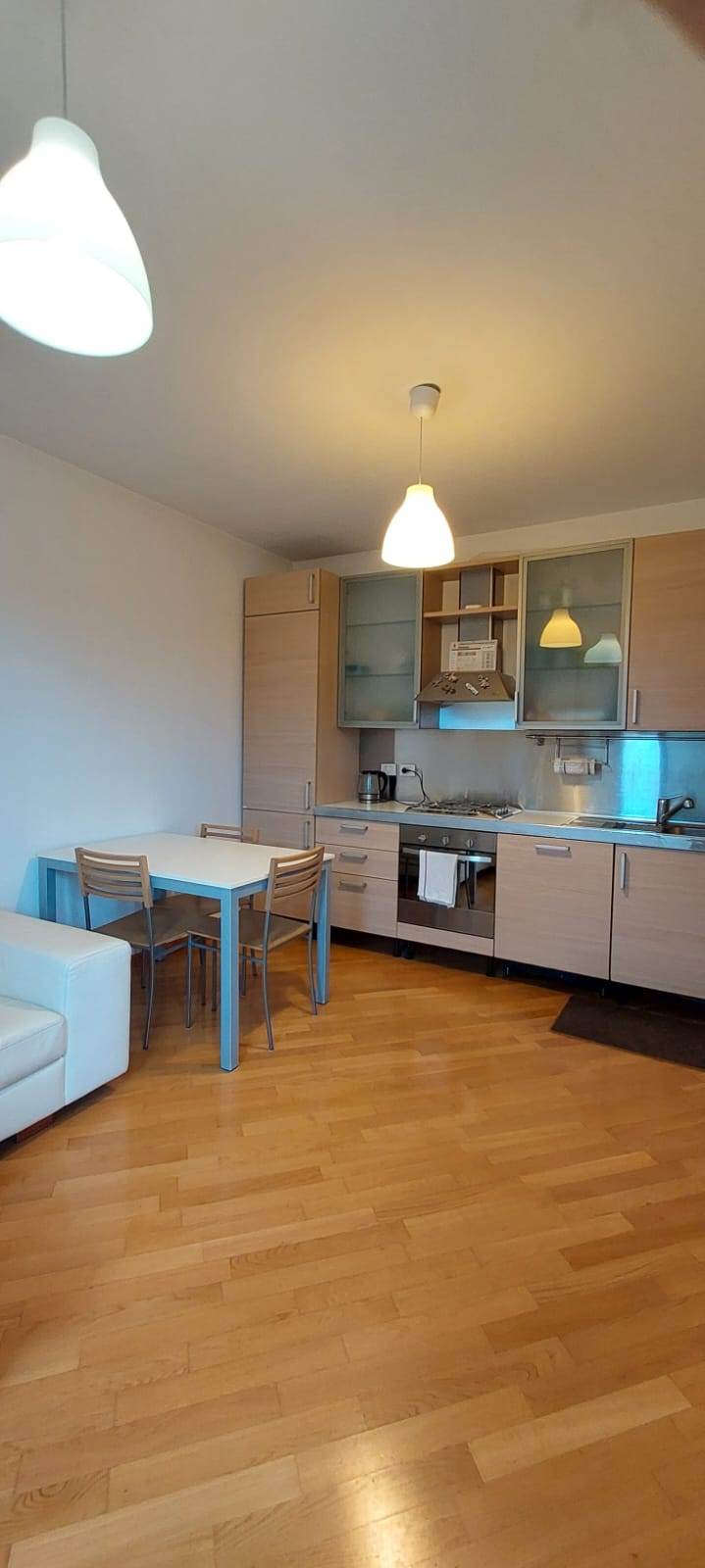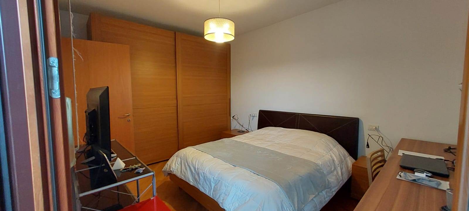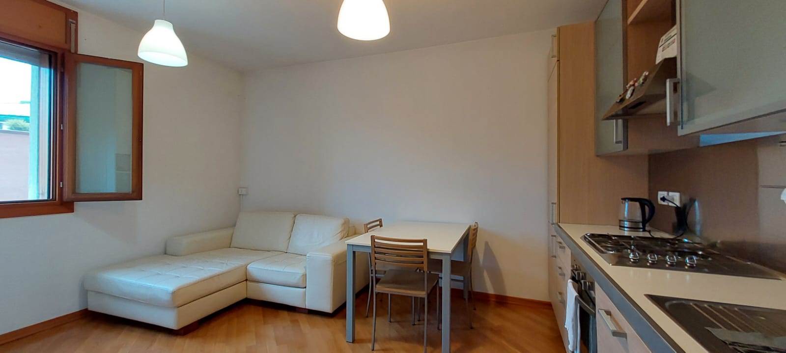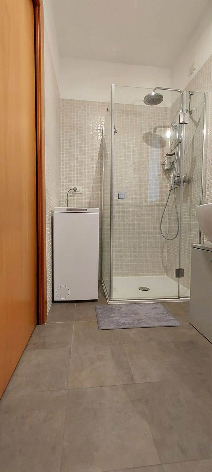 L'appartamento è così composto: ingresso, soggiorno con cucina a vista, camera da letto matrimoniale, bagno finestrato con box doccia in cristallo e balcone. Affaccio su un parco pubblico.