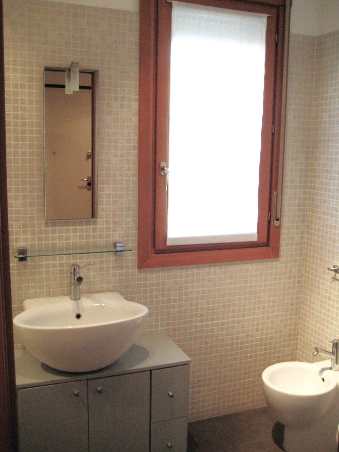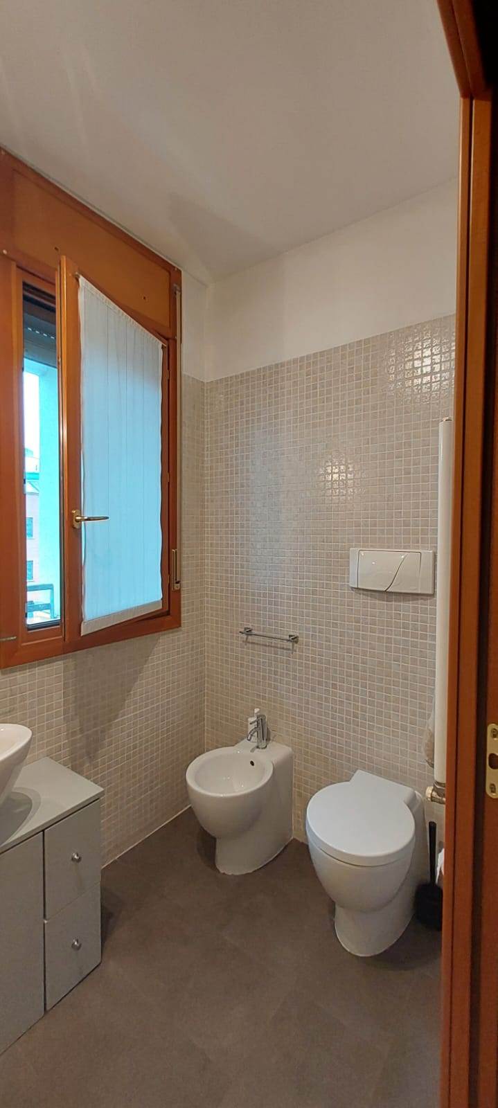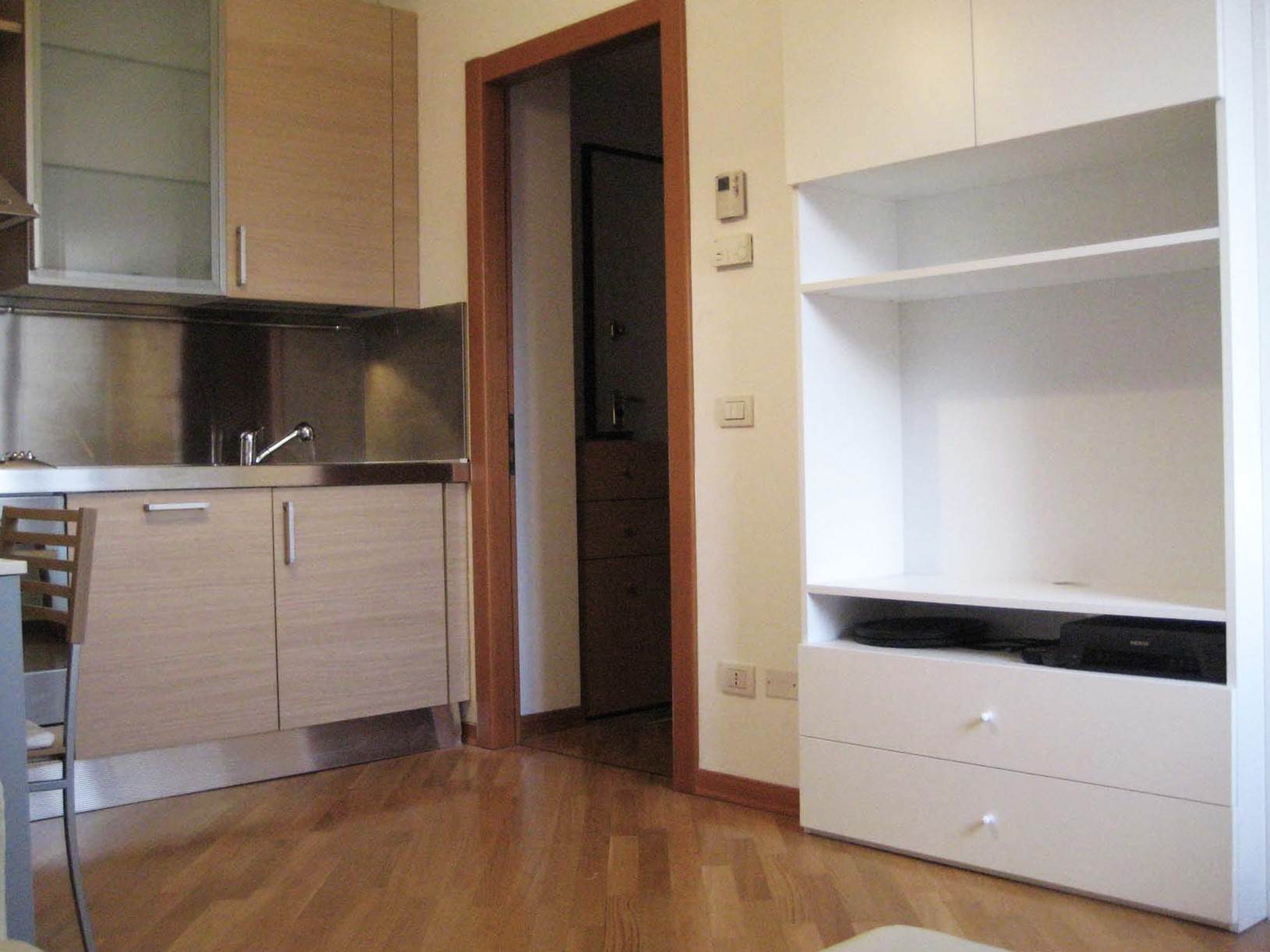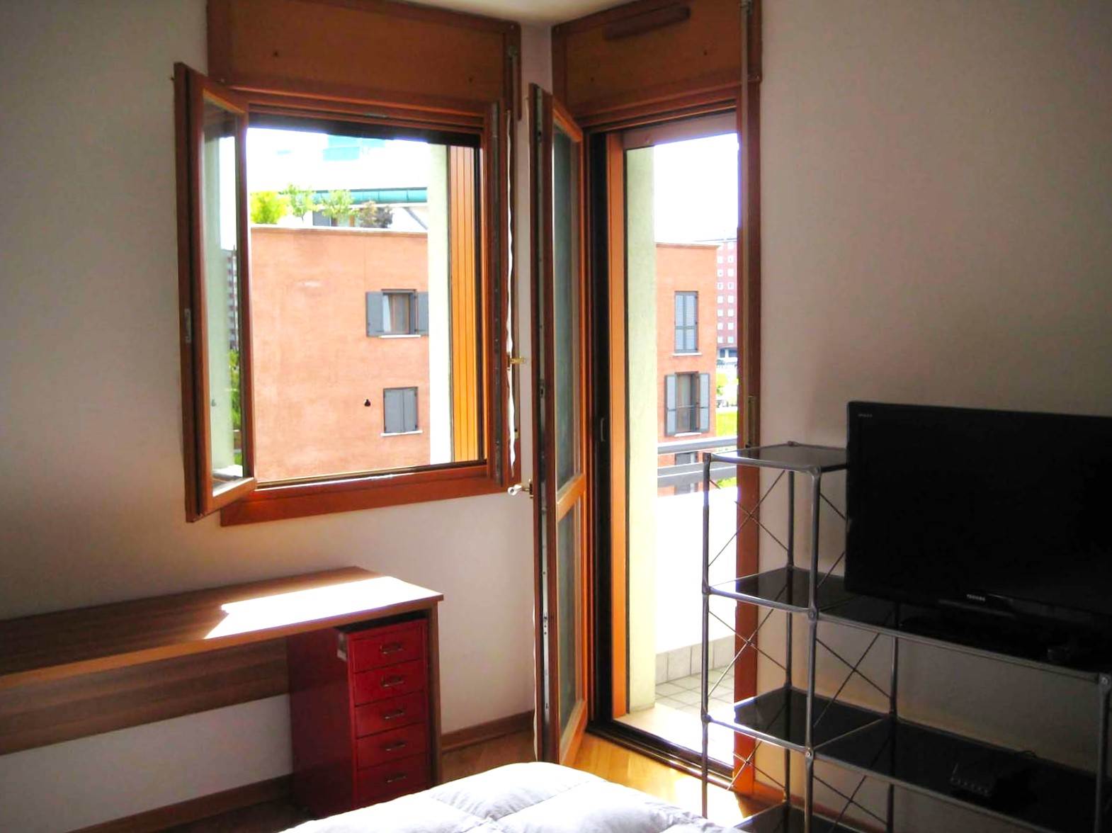 L'appartamento è così composto: ingresso, soggiorno con cucina a vista, camera da letto matrimoniale, bagno finestrato con box doccia in cristallo e balcone. Affaccio su un parco pubblico.