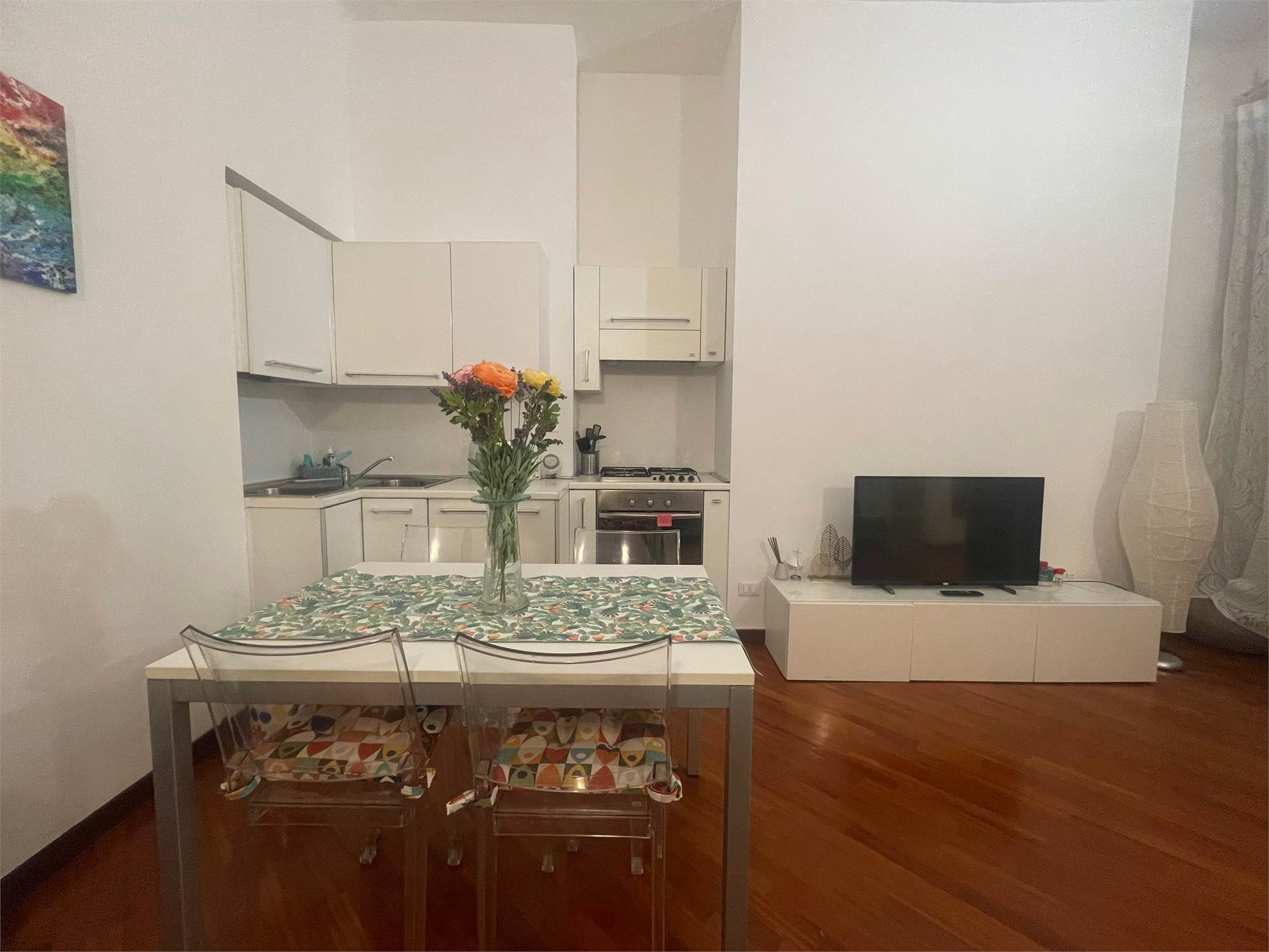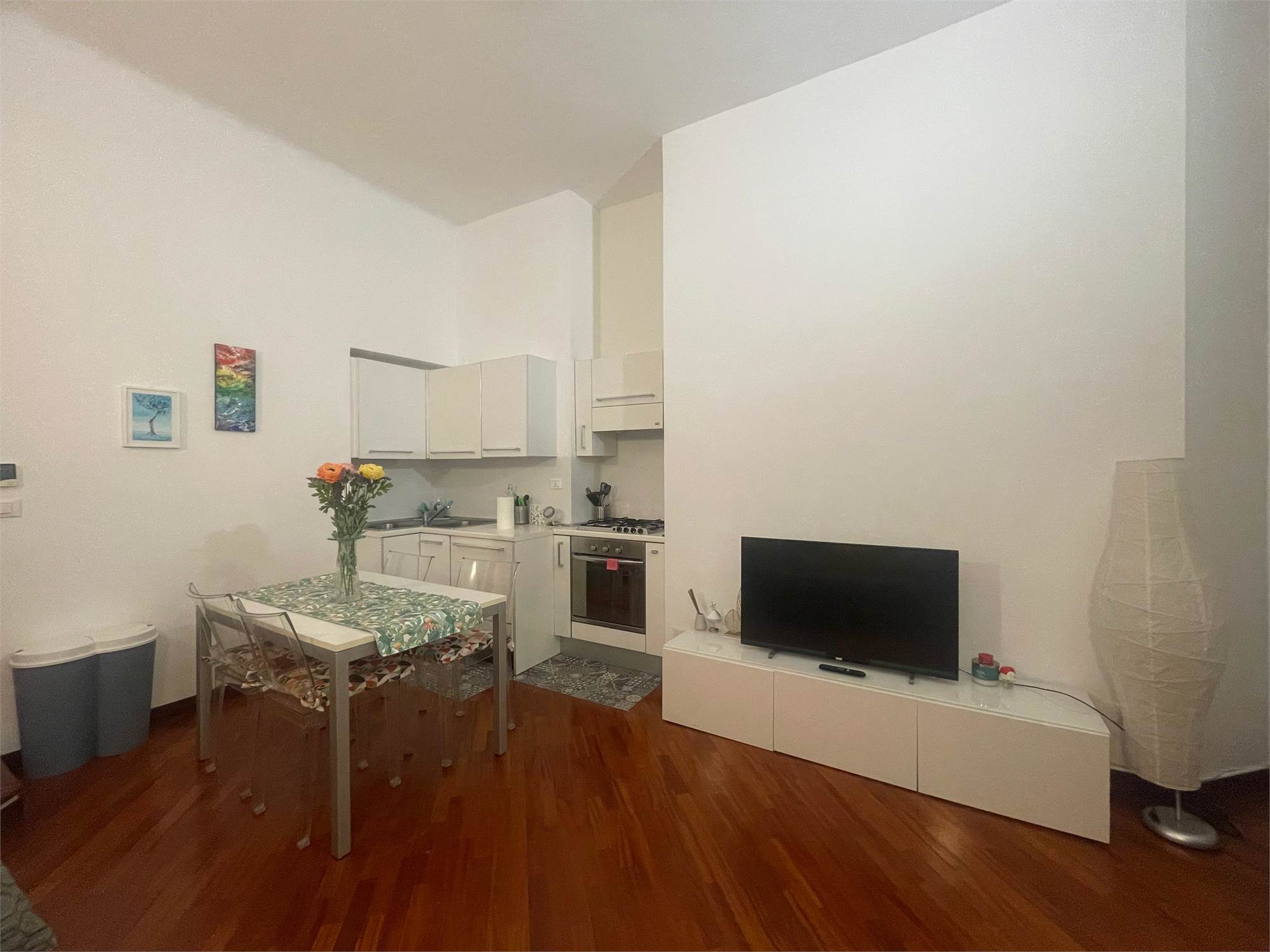 L'immobile è composto da: ingresso, soggiorno con cucina a vista, camera da letto, bagno con box doccia.