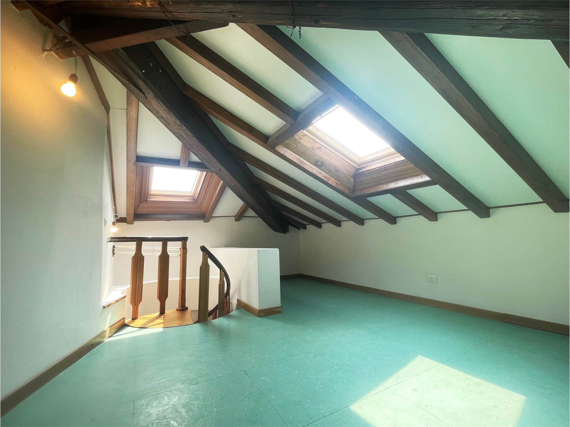 L'appartamento composto da: ampio ingresso, cucina abitabile arredata, soggiorno, camera da letto matrimoniale con bagno privato e box doccia, seconda camera mansardata e secondo bagno finestrato con box doccia.