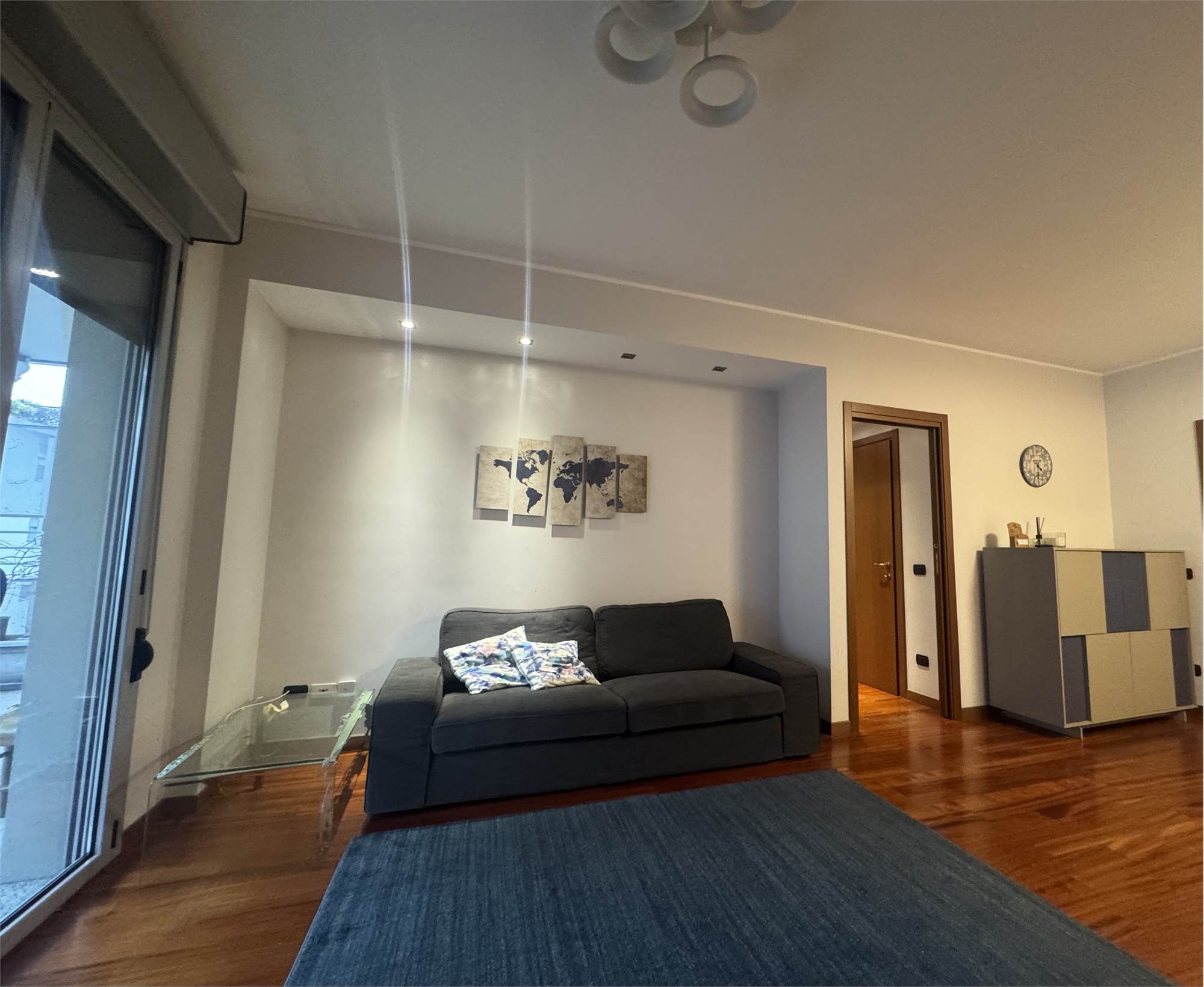 Situato nel cuore del quartiere Santa Giulia, in uno stabile moderno, proponiamo ampio trilocale, posto al settimo piano, con ascensore. L'immobile, completamente arredato, è così composto: ingresso su doppio soggiorno, cucina abitabile, due camere da letto, di cui una singola e una matrimoniale, locale lavanderia e due bagni, di cui uno finestrato.