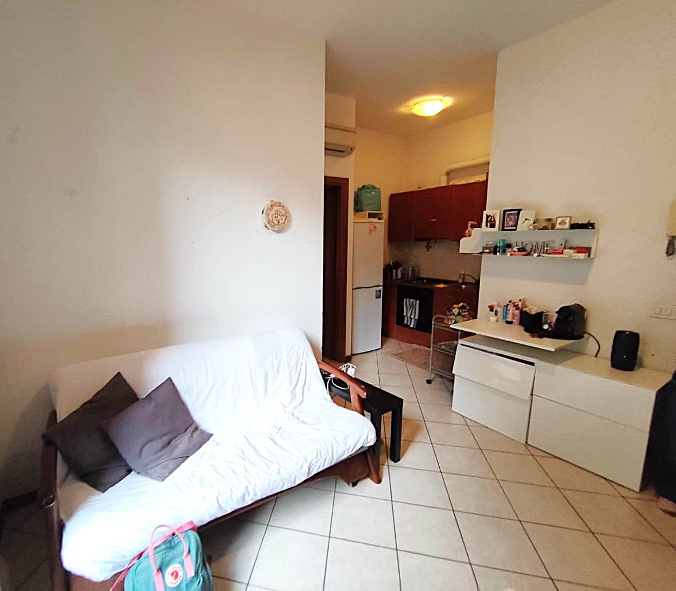 L'appartamento è così composto: ingresso, soggiorno con cucina a vista, bagno con box doccia, camera da letto matrimoniale e balcone.