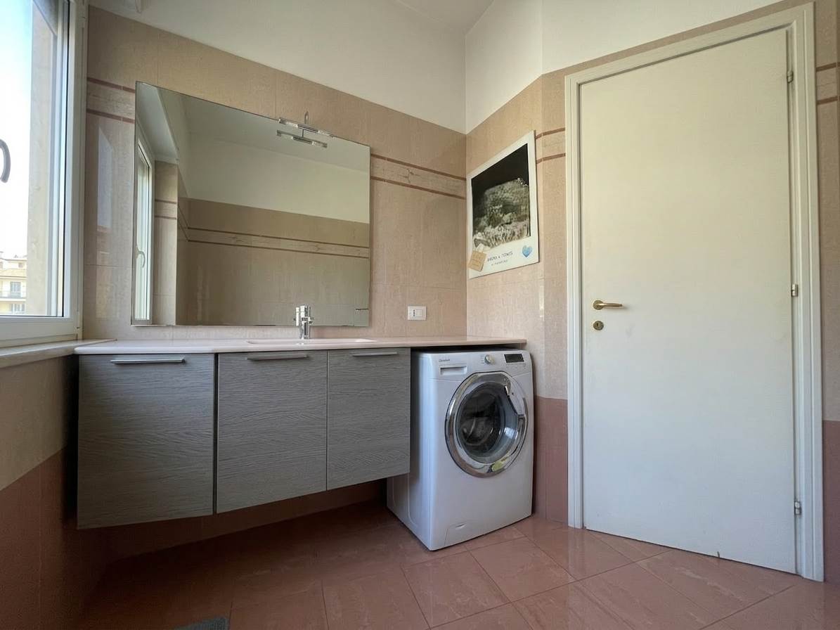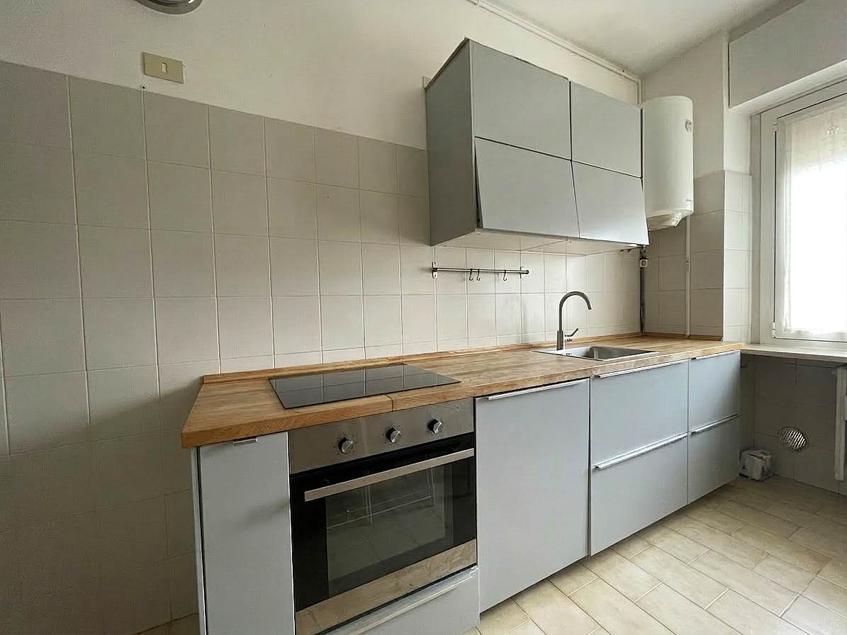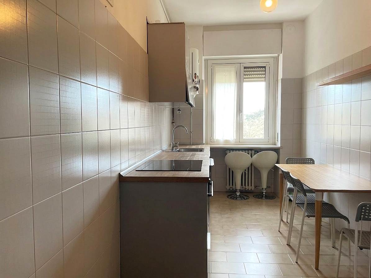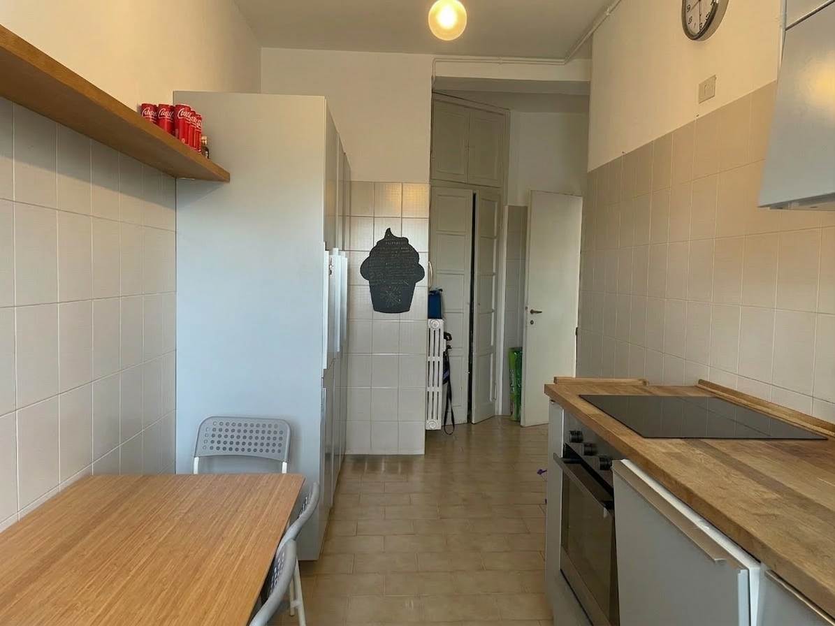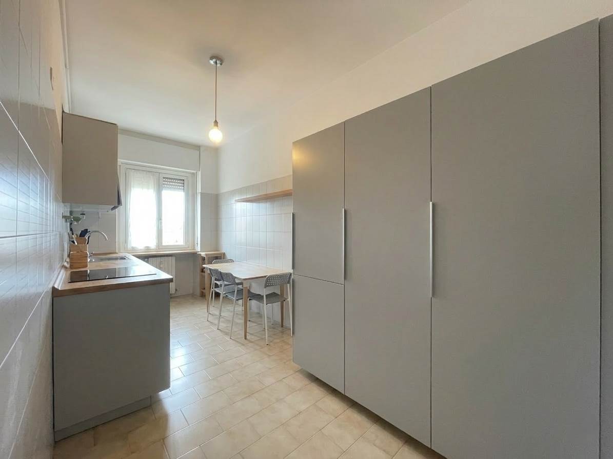 In palazzo degli anni' 60 con ascensore e servizio di portineria mezza giornata proponiamo, al quinto piano, trilocale di 104 mq con SOLO CUCINA ARREDATA.