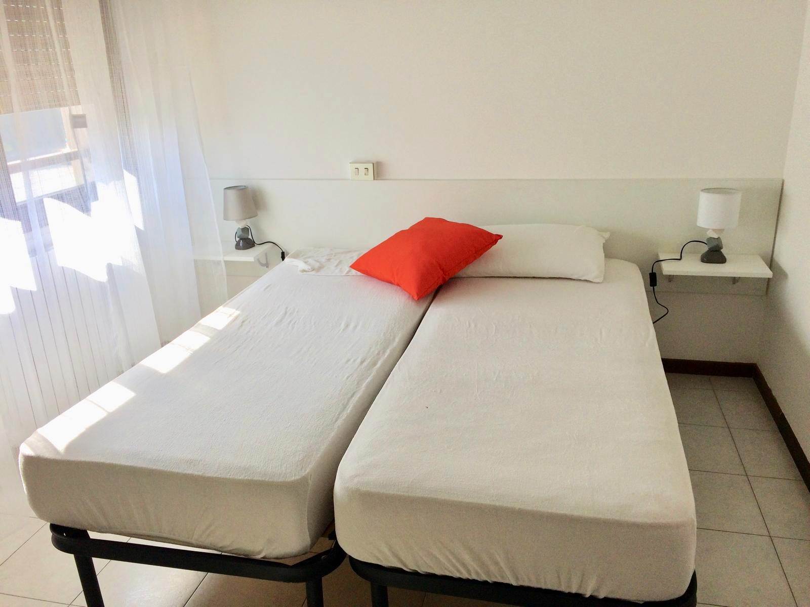 L'appartamento è composto da: ingresso in zona giorno con divano e cucina a vista, zona notte separata, antibagno e bagno dotato di areazione forzata e con box doccia.