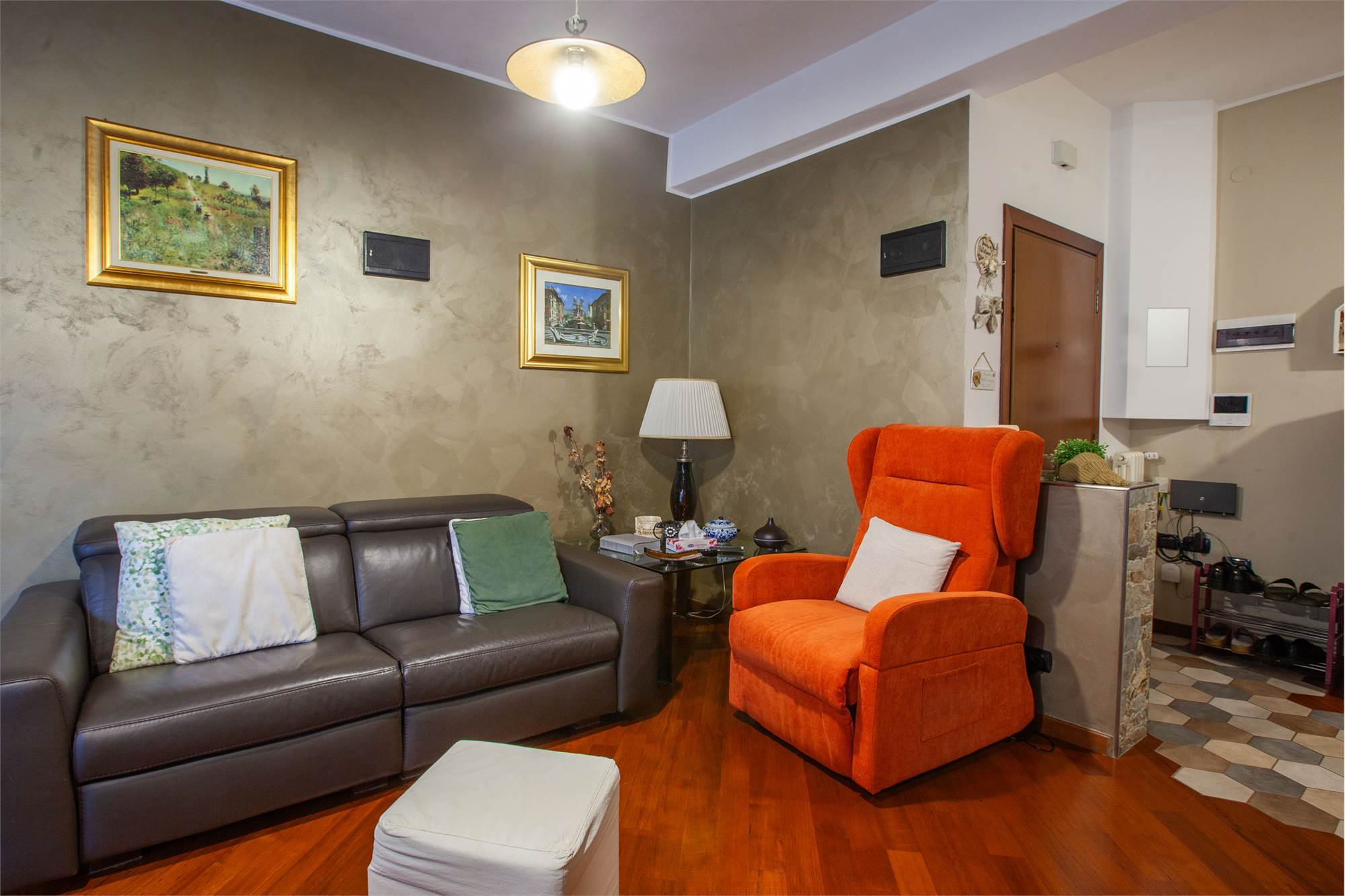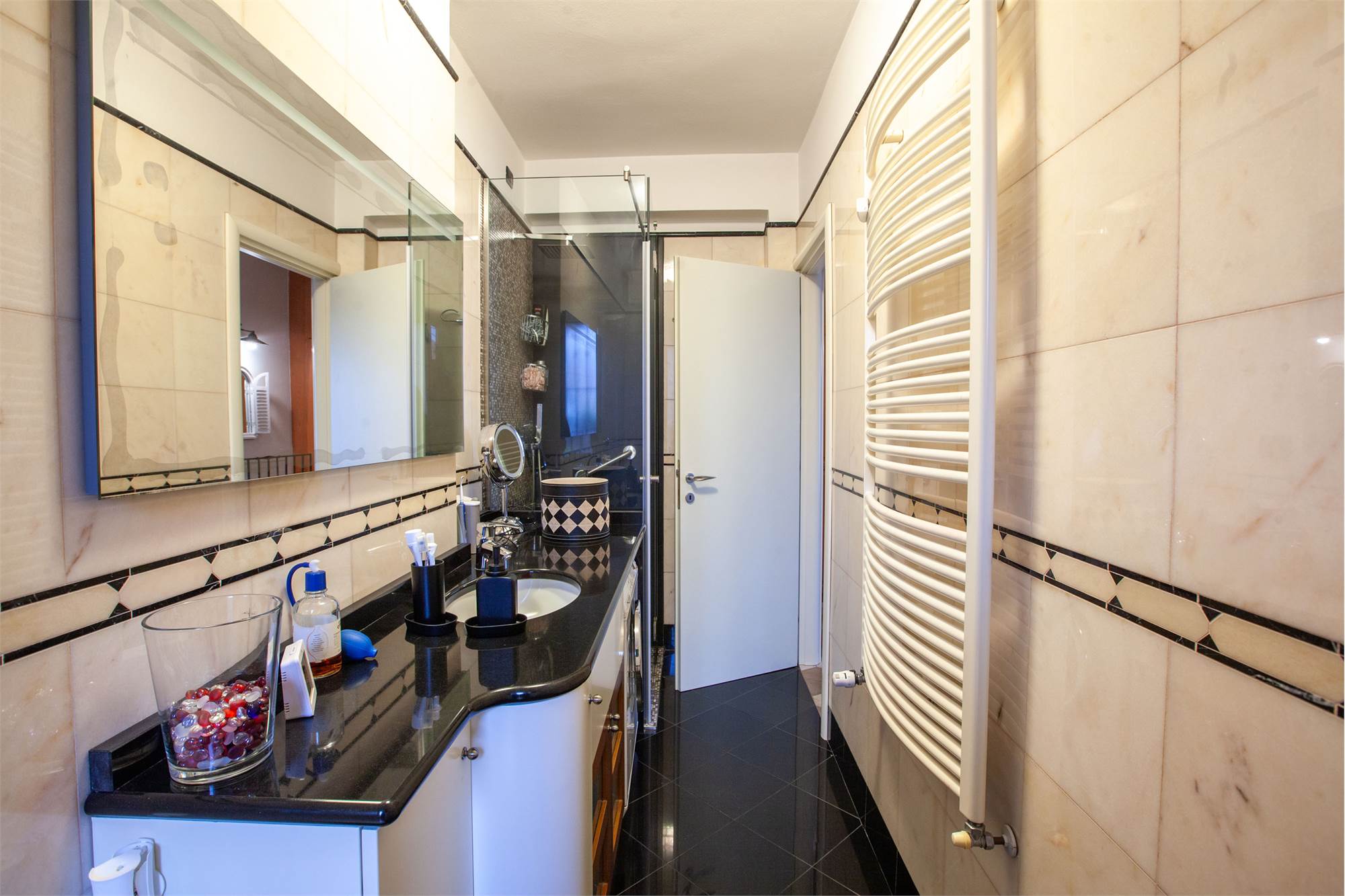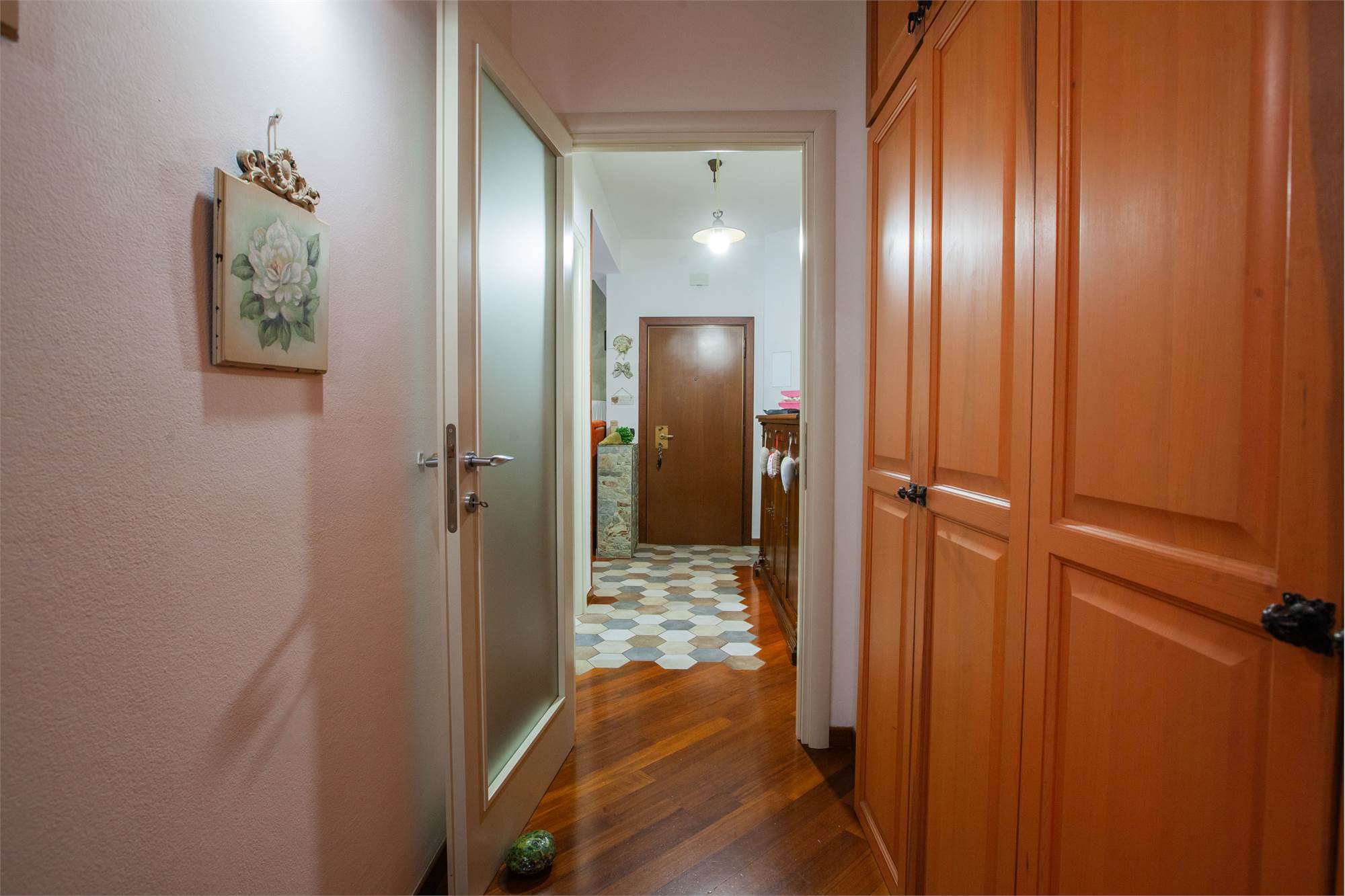 Doppi vetri. Pavimenti in marmo e parquet.